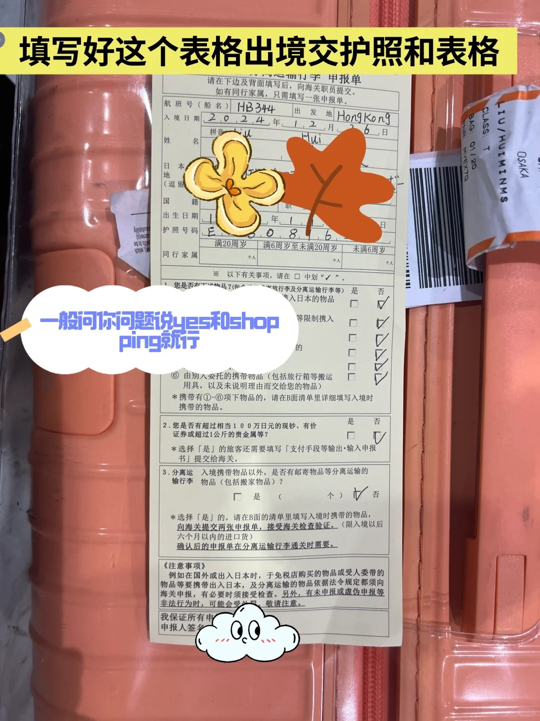 用Visit Japan Web填入境信息生成黄码(入境审查)+蓝码(海关申报),截图保存到手机相册。没填的姐妹下飞机要现场填表,排队至少半小时起步!