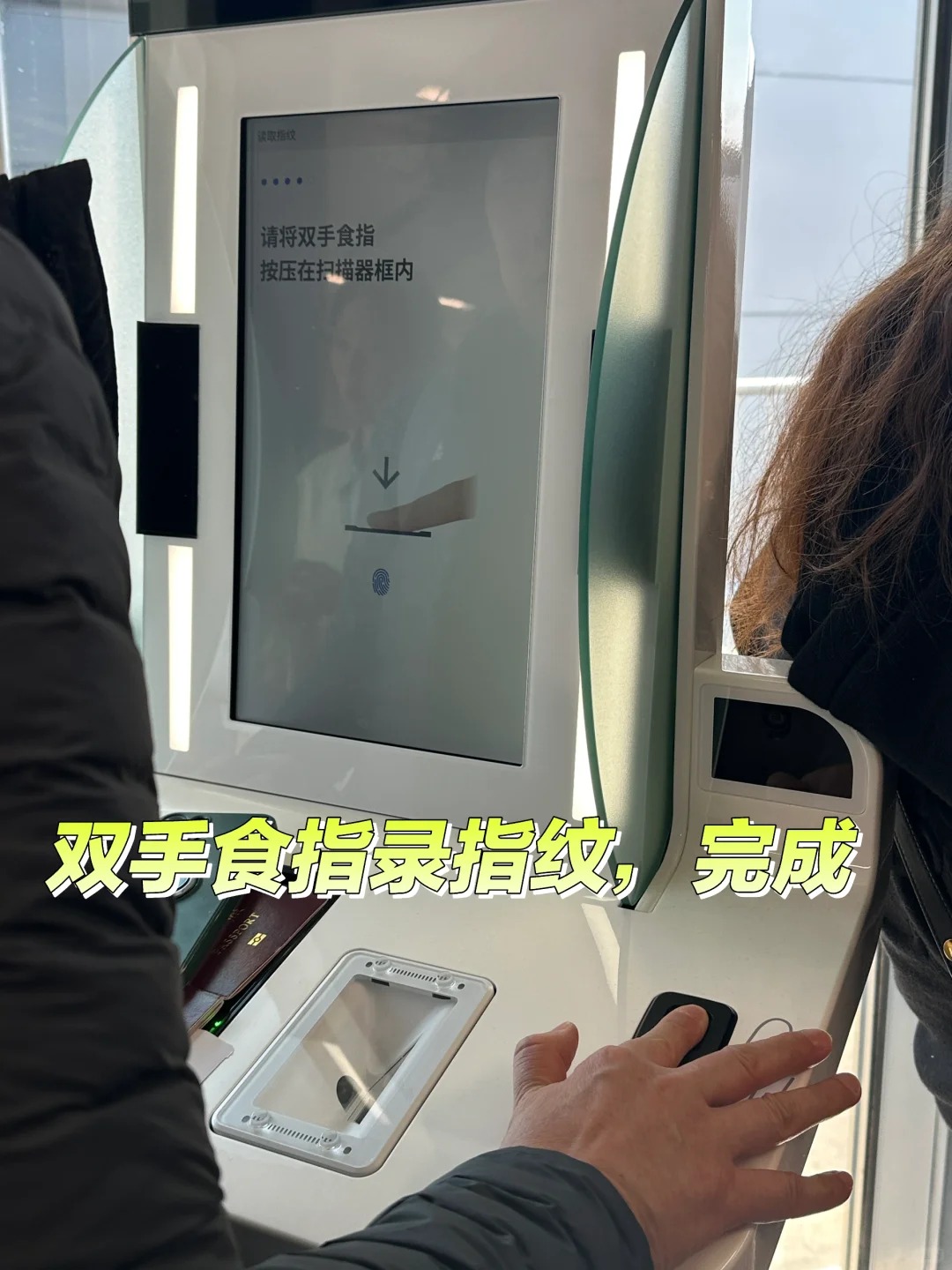 把护照+VJW黄码怼到机器上,双手食指按指纹+摘口罩拍照(记得整理刘海!)