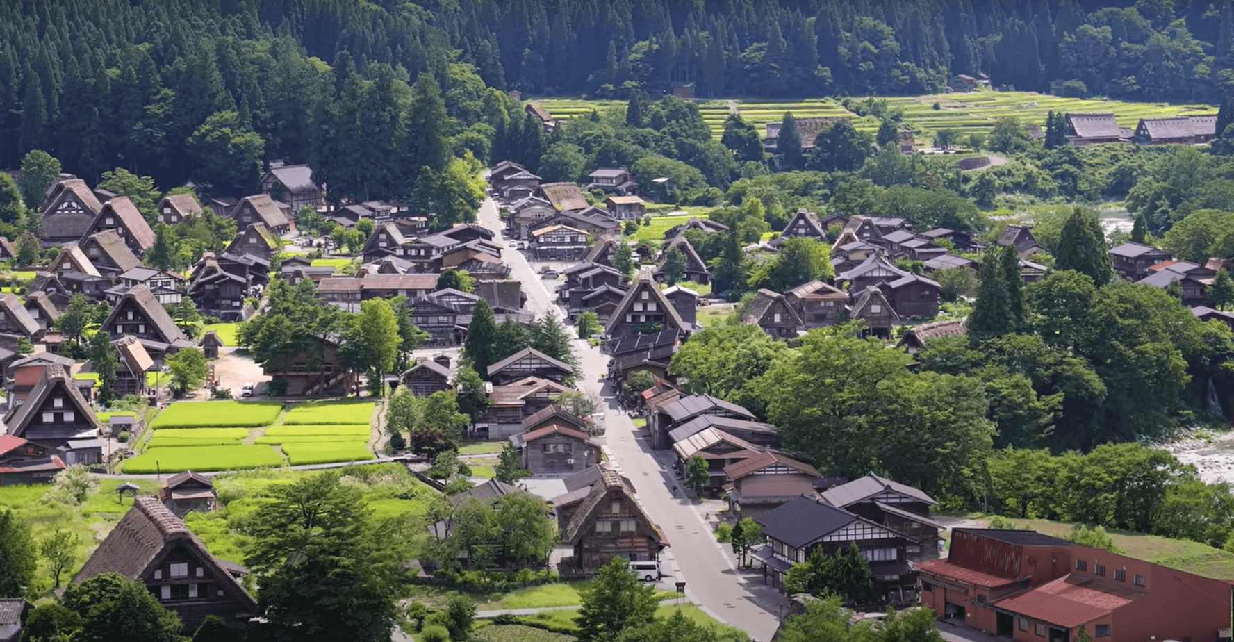 🌿 夏日奇遇:闯入绿野仙踪的清凉 一到夏天,白川乡就被浓得化不开的绿色包围!稻田如碧绿的绒毯铺开,远山青翠,溪水潺潺。阳光透过树叶洒下斑驳的光影,耳边是清脆的蝉鸣。在这里深吸一口气,仿佛所有的暑气和烦恼都被治愈了。傍晚时分,点点灯光亮起,又是另一番静谧美好的景象。
