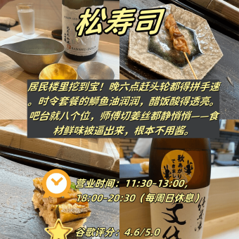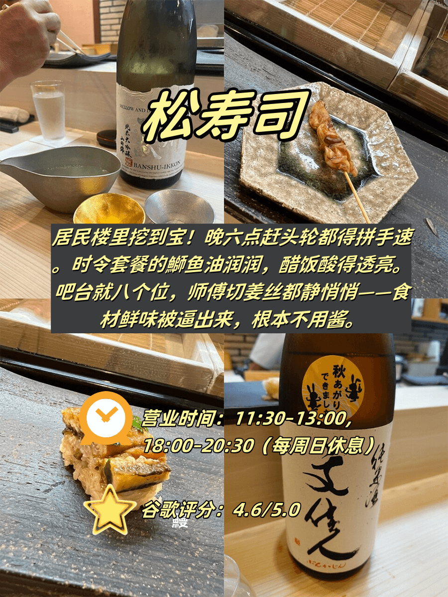 附营业刺客表+必杀菜品+错峰攻略📍 1️⃣ 松寿司(📍居民楼里|⏰18:00-20:30|⛔周日休|谷歌4.6) 🎐 静音模式の醋饭艺术…
