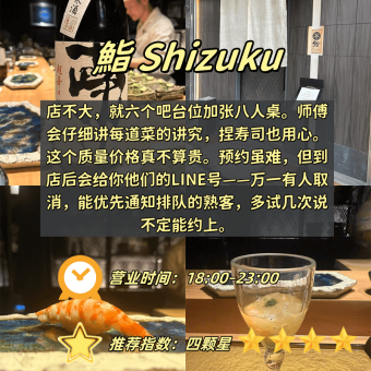 附预约神技+错峰攻略+血泪营业时间📍 1️⃣ 鮨 Shizuku(📍地址未写|⏰18:00-23:00|🌟推荐4星) 🎎 6席吧台的…