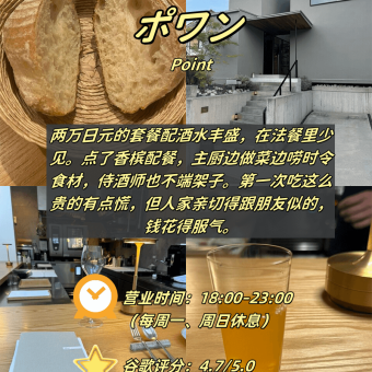 附营业时间雷区+服务特色+性价比测评📍 1️⃣ POINT ⏰ 营业:18:00-23:00|⛔ 周一、日休|谷歌4.7💰 人均参考:约20…