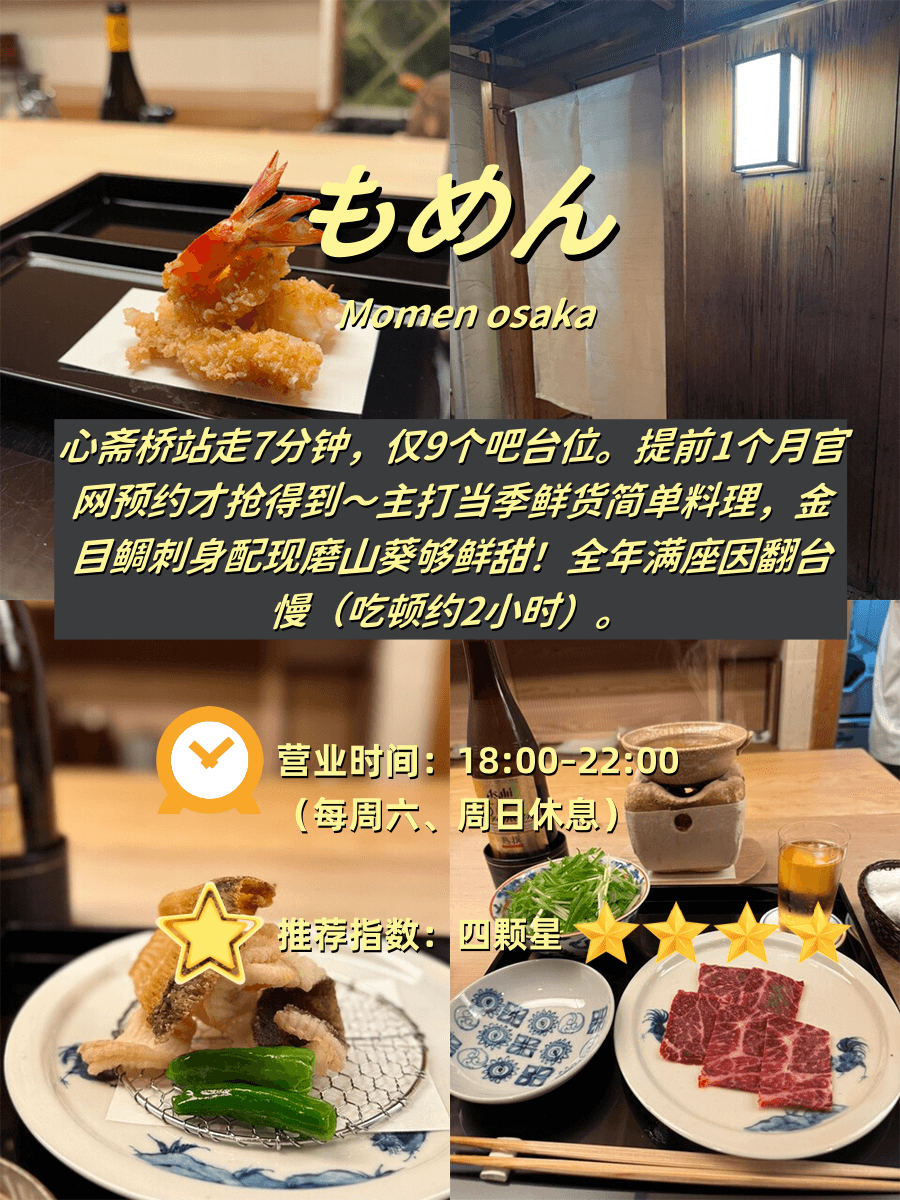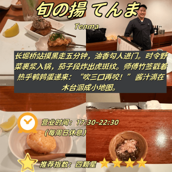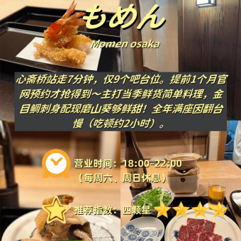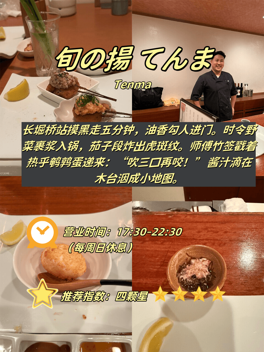附营业时间雷区+必吃项+人均参考 1️⃣ 旬の揚てんま(Tenma) 📍 长堀桥站步行5分钟⏰ 17:30-22:30|🚫 周日休|💰人…