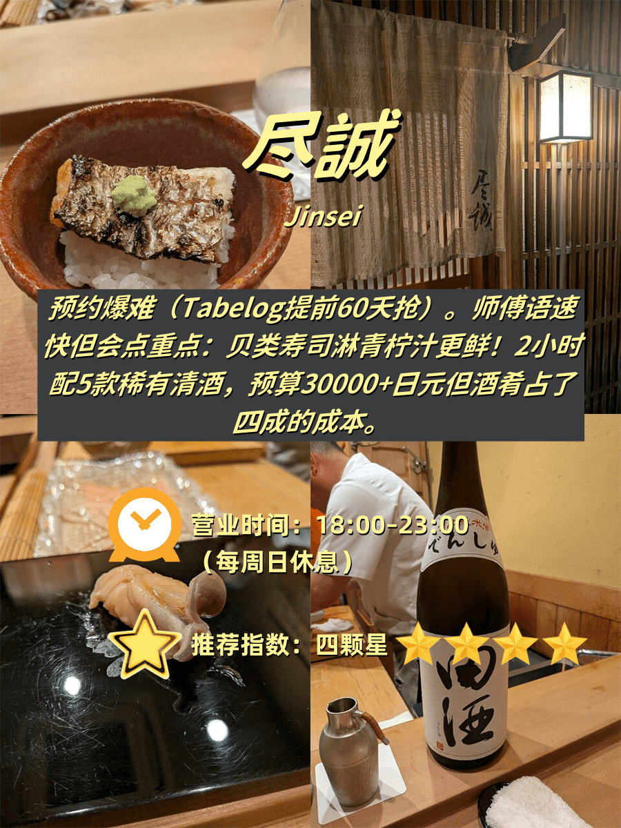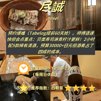 附步行时间+抢位技巧+避坑重点 1️⃣ 尽誠(Jinsei) 📍 心斋桥站步行8分钟⏰ 18:00-23:00|🚫周日休|💰人均30,000…