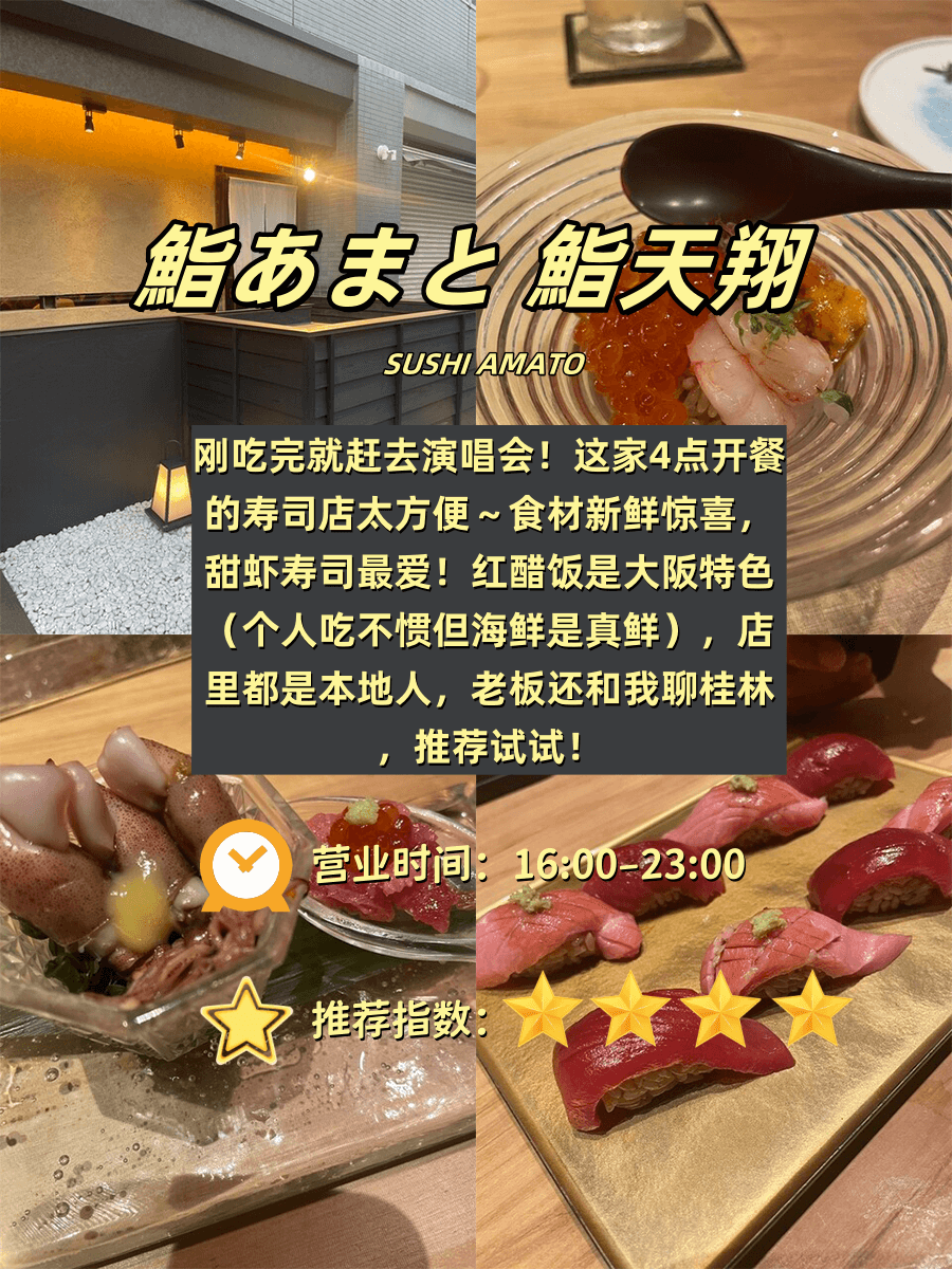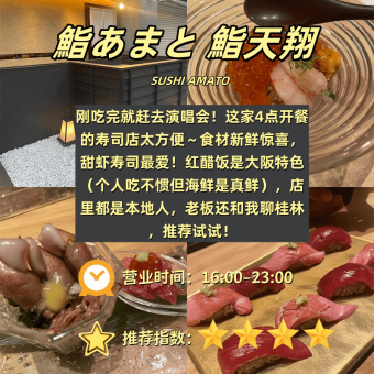 附真实吃垮攻略+避坑指南+营业时间📍 🍣 1️⃣ 鮨あまと鮪天翔(📍地点未写|⏰16:00-23:00|🌟推荐4) ✨ 演唱会救星の寿司店…