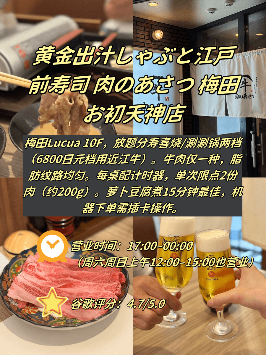 附错峰技巧+招牌吃法+限时预警📍 1️⃣ 肉のあさつ(梅田Lucua 10F) 📍 梅田站直通2分钟⏰ 平17:00-00:00|六日12:00…