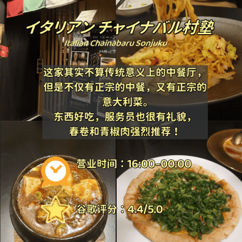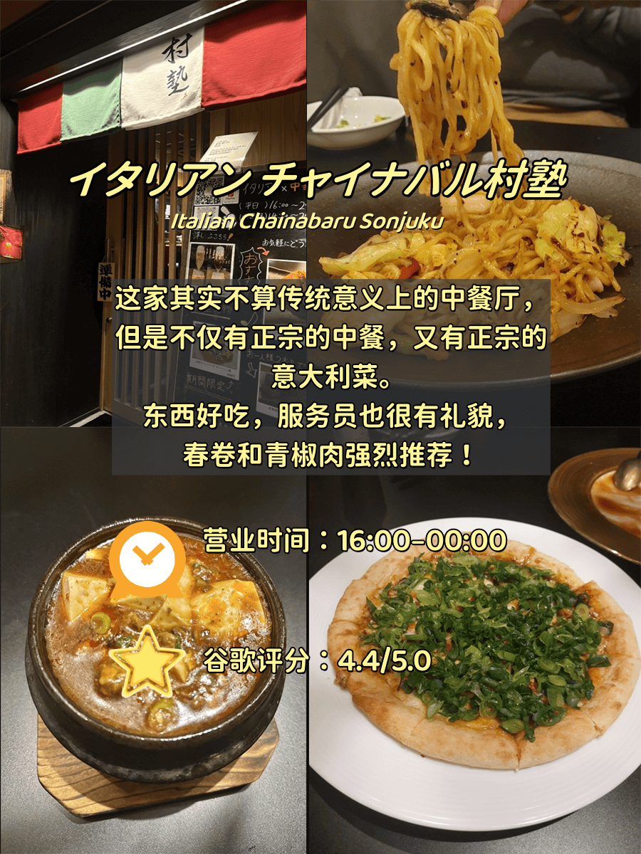 附真实点菜建议+营业时间📍 1️⃣ イタリアンチャイナル村塾 📍なんば駅步行7分|⏰16:00-24:00(无休)🌱 真实体验:虽是「意式中华」混搭店,春卷皮超…