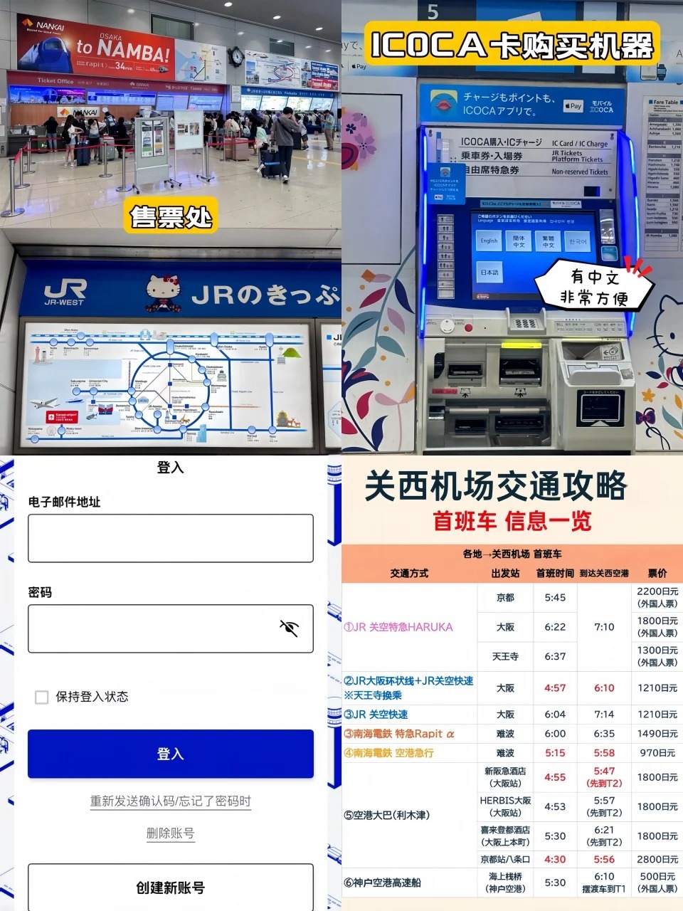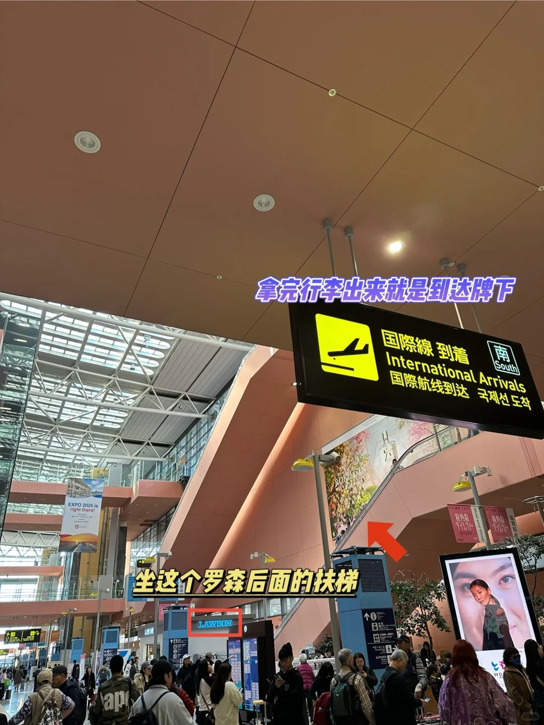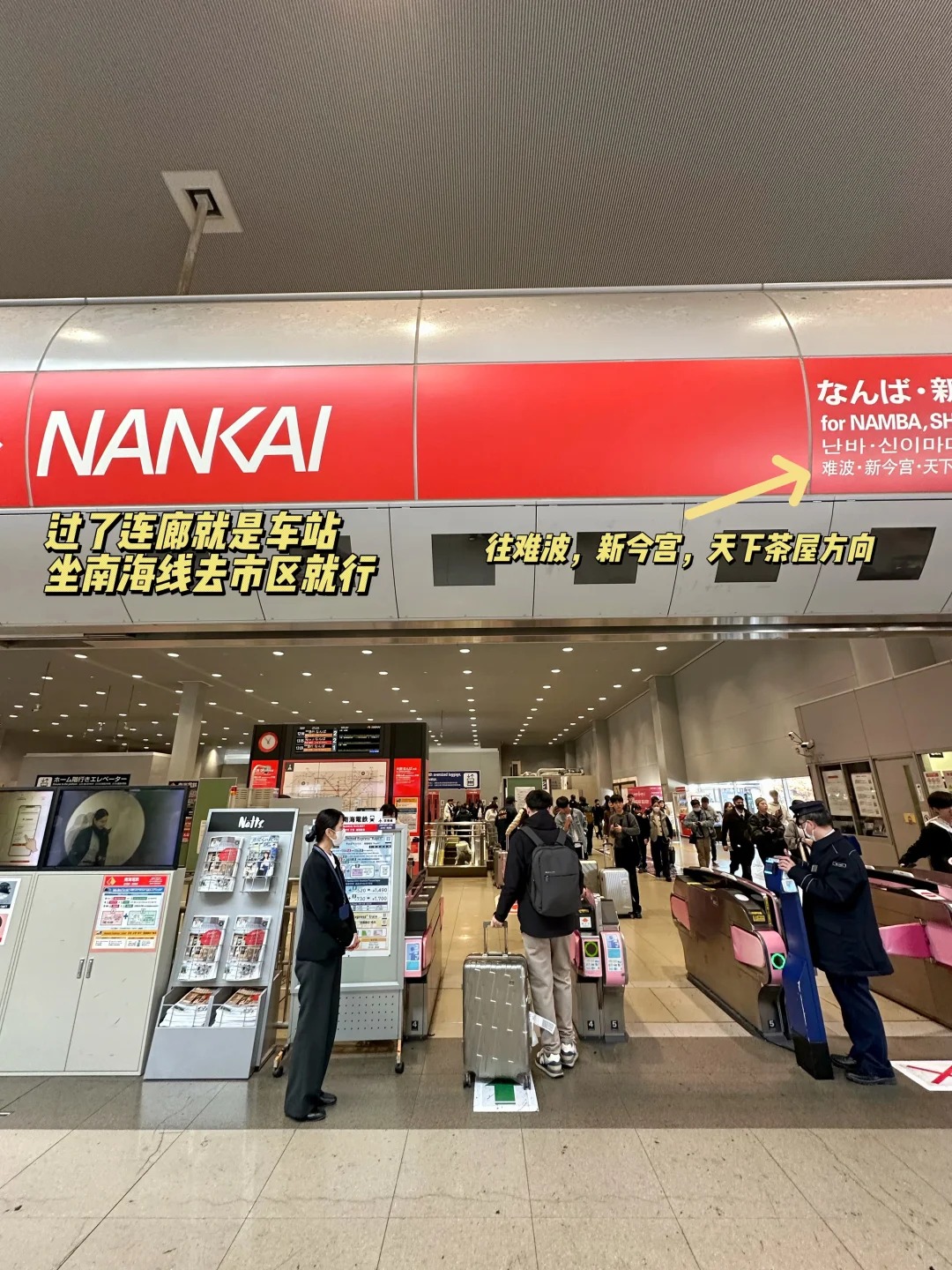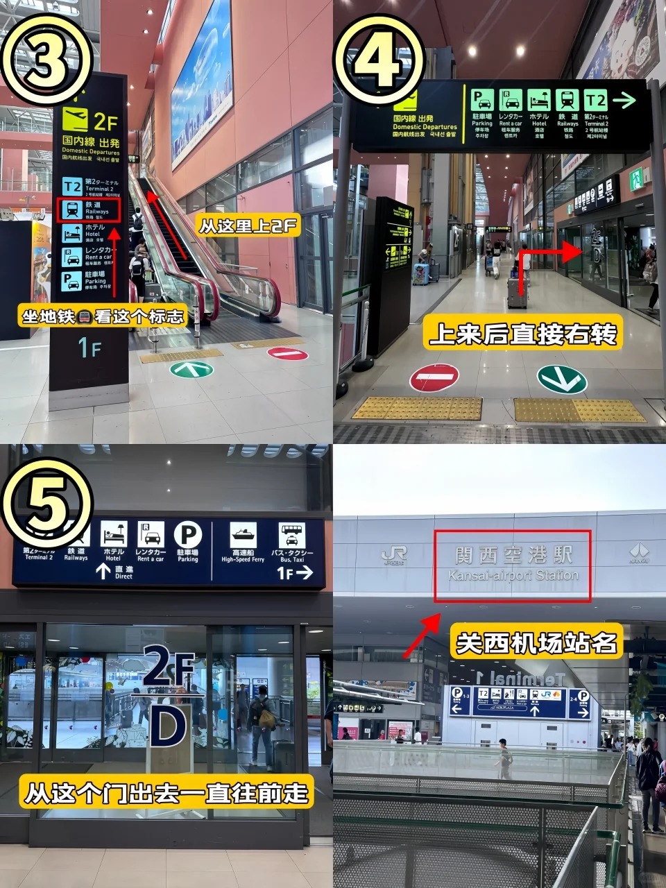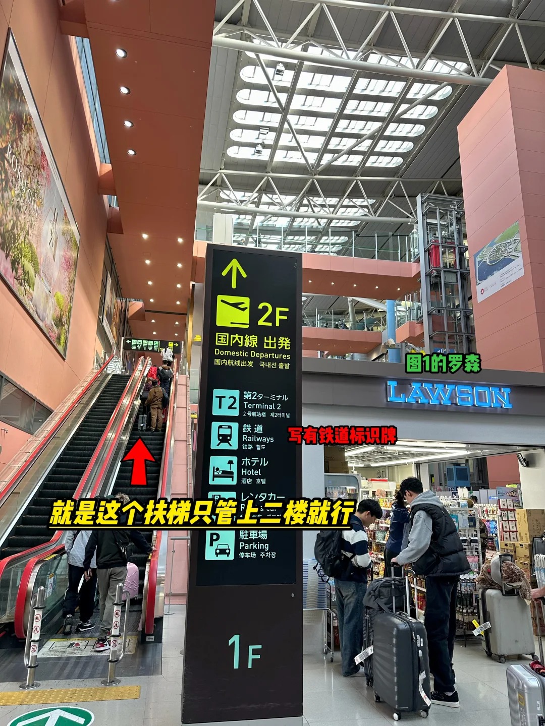 1️⃣ 到达后路线指引拿完行李从国际到达口出来,左手边就能看到罗森便利店,顺着便利店方向找到去往2楼的扶梯(注意看“铁道”或“关西空港站”标识)。 …