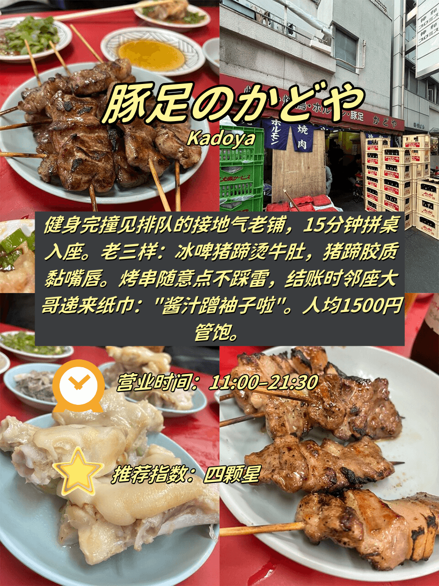 营业时间雷区+招牌菜+本地人吃法全公开 1️⃣ 豚足のかどや(Kadoya) 📍 难波站步行5分钟⏰ 11:00-21:30|💰 人均1,5…