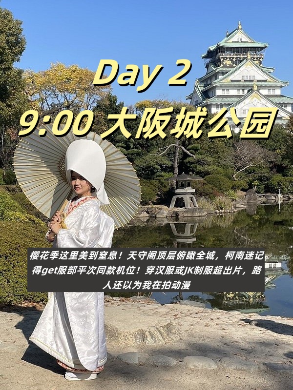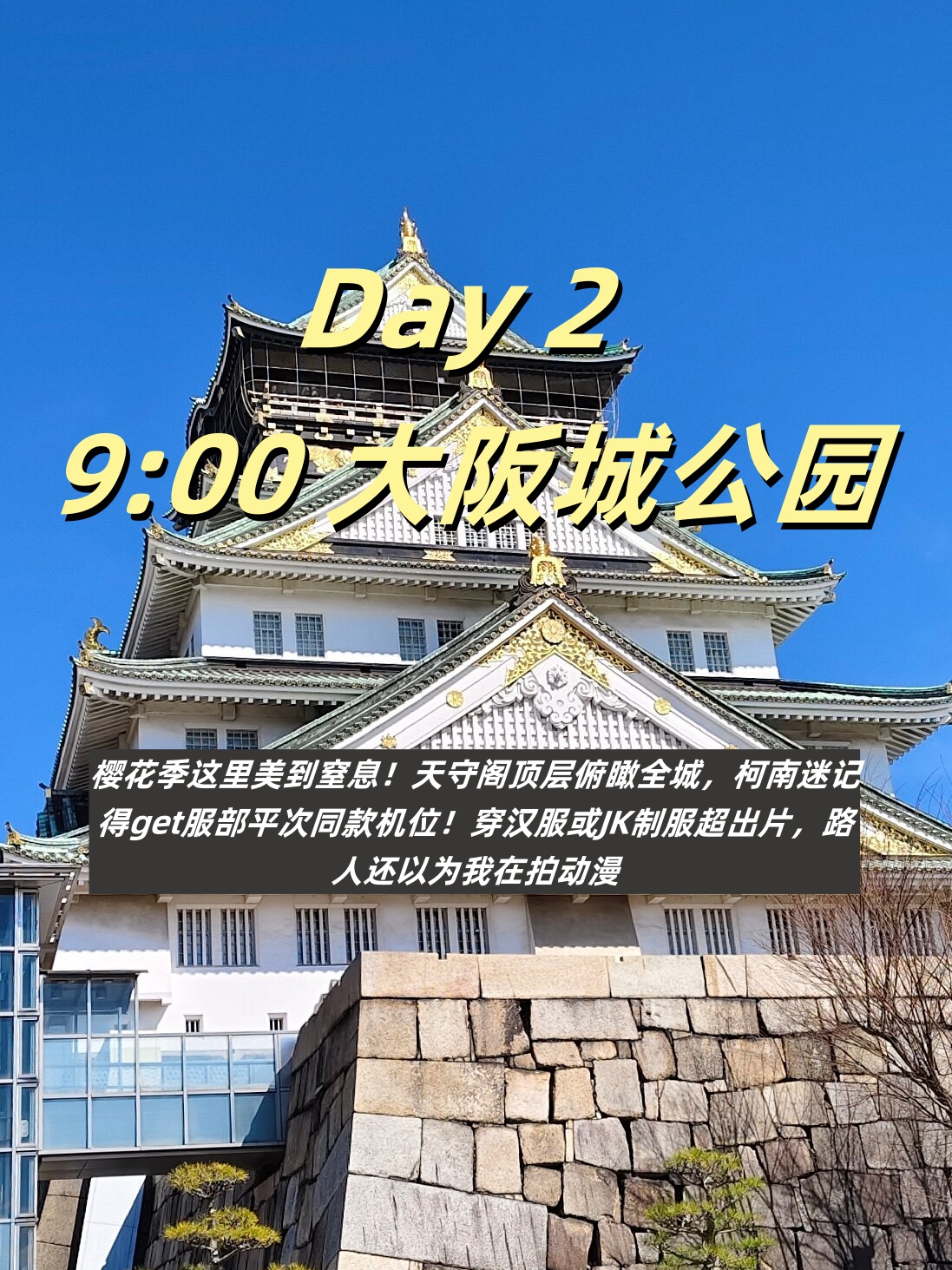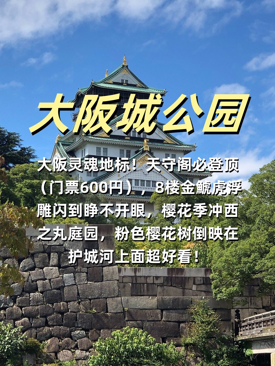 🏯 大阪城公园:穿越百年的战国史诗 核心玩法:登顶 天守阁 俯瞰全城(门票600日元),8层展望台的镀金鯱虎浮雕在阳光下熠熠生辉;樱花季…